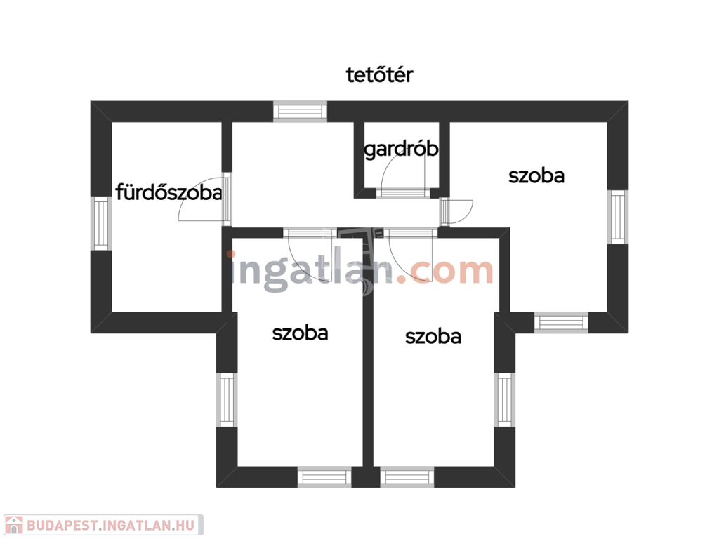 Tetőtér: két tágas hálószoba, egy félszoba, gardróbszoba,