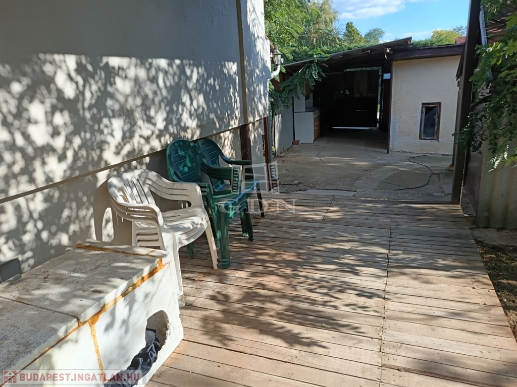 Tartozik az ingatlanhoz egy 45 m²-es fedett terasz és egy 10 m²-es tároló. A telek két utcára nyílik.