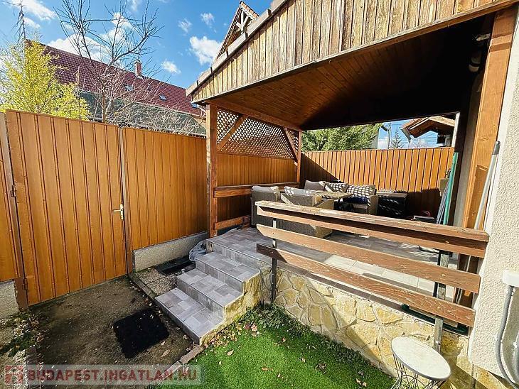 Az ingatlan DNY-i tájolásának köszönhetően egész nap világos. A földszinten előszoba, fürdőszoba, étkezős konyha és egy fényes nappali kapott helyet, amely közvetlen kapcsolatban áll a 9 nm-es terasszal és a saját használatú, 30 nm-es kerttel. Az emeleten két külön nyíló szoba és egy további fürdőszoba található.
