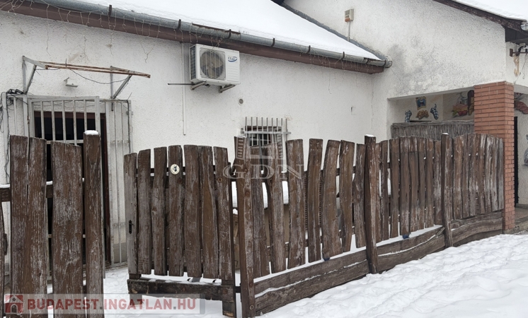 A ház elkőkertet követően helyezkedik el a telken, majd mögötte egy tégla szerkezetű kb 15 nm nagyságú tároló található, amely mellett 6 autó beállására alkalmas udvar fekszik. A terület rendezett, körbekerített.
