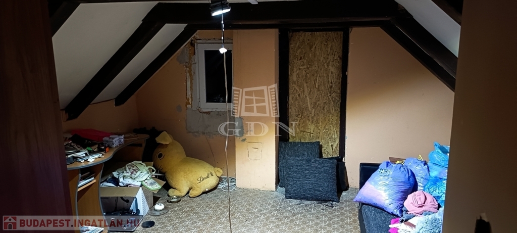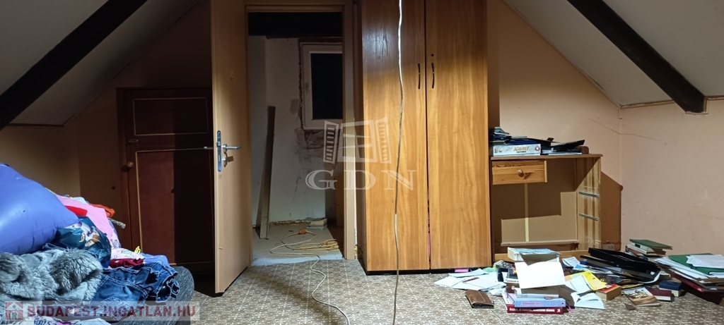 A tetőtéri rész beépített, a nyílászárók itt is újak, hőszigeteltek. Egy előtér és egy szoba került kialakításra.