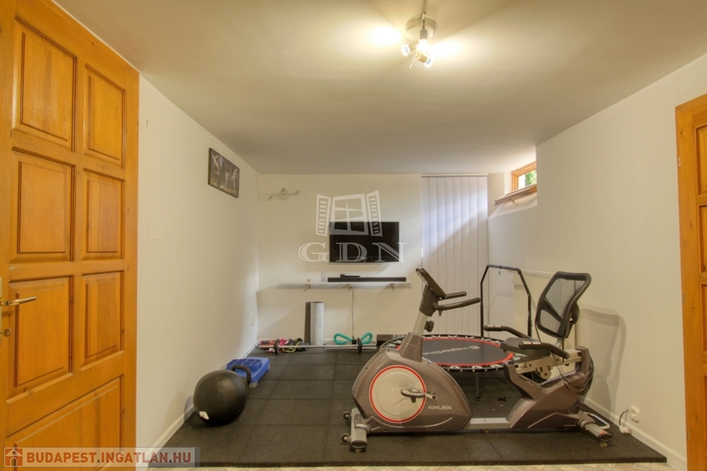 Szuterén: konyha és közösségi tér, fürdőszoba, edzőterem, kazánház, illetve kívülről is megközelíthető pince (44 m2) és tároló (8m2)
