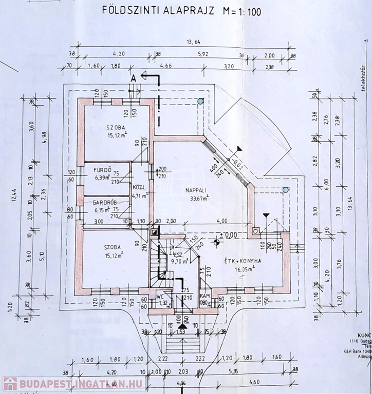 Szerkezet: 40 cm vastag téglafalak, monolit vasbeton alap és födém