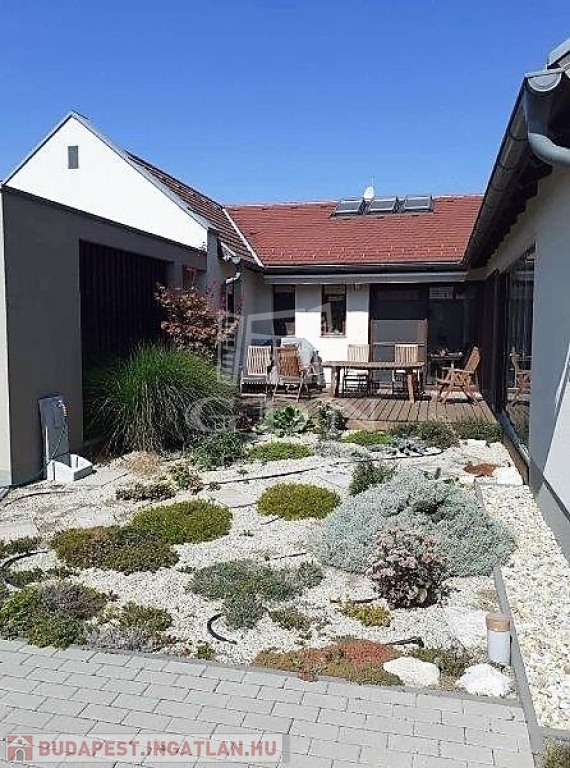 Eladó a Velencei-tó szomszédságában Gárdony-Dinnyés településen, újépítésű övezetben egy gyönyörű, összesen 275 nm-es, egyszintes, összkomfortos családi ház.