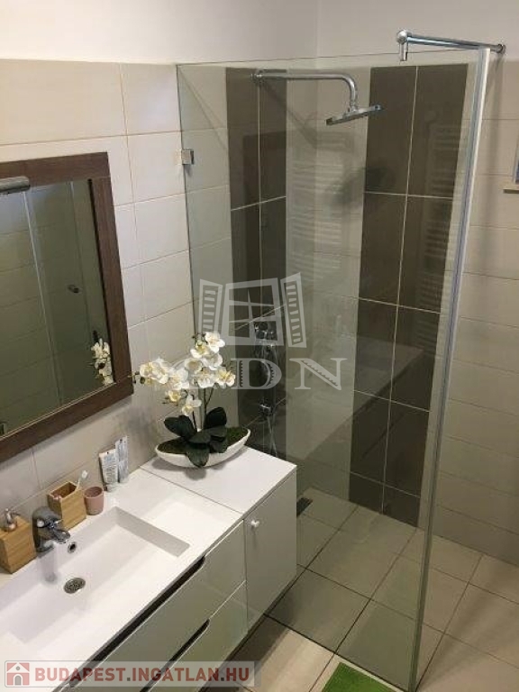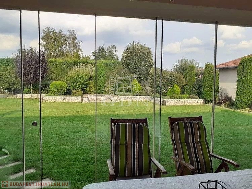A 25 nm-es fedett, fűthető terasz eltolható üvegfelületekkel megnyitható a kert felé, de ezen kívül egy 22 nm-es nyitott terasz is rendelkezésünkre áll, amin egy elektromos napellenző gondoskodik az árnyékról.