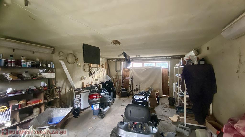 A lakótérből is megközelíthető alagsor kb. 60 m²-es, ahol több tárolóhelyiség és garázs kapott helyet — ideális megoldás akár barkácsoláshoz vagy tároláshoz.