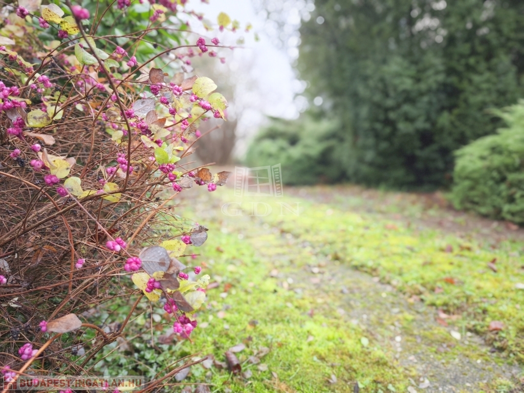 A kertben számos termő gyümölcsfa található, többek között szelídgesztenye, mogyoró, cseresznye, füge, körte, alma és dió, így a telek nemcsak tágas, hanem értékes és hangulatos is.