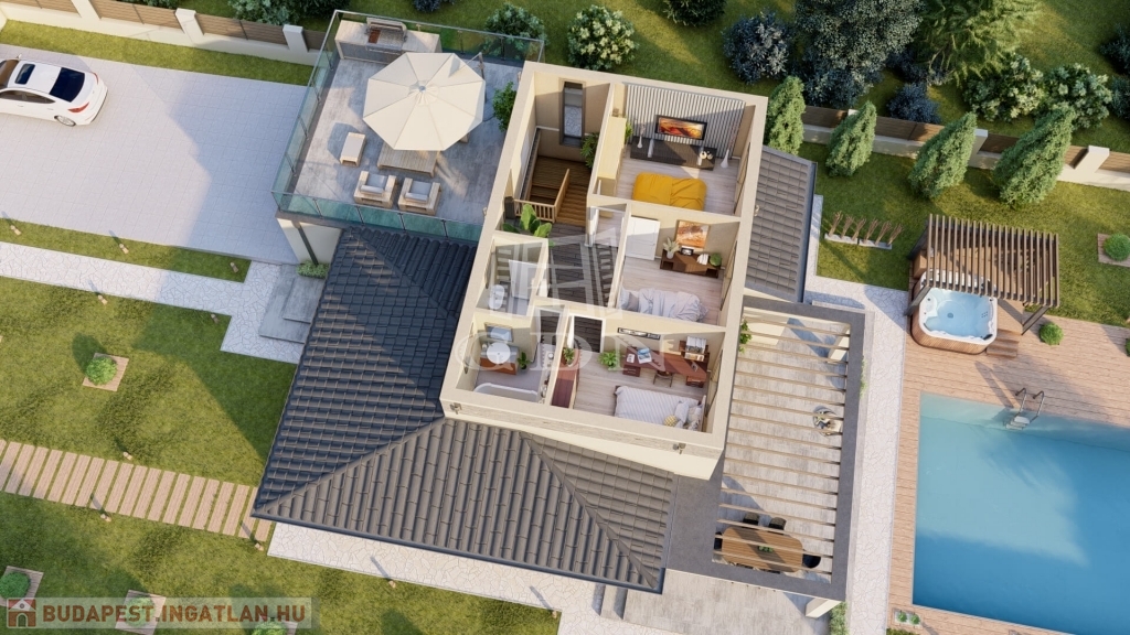A hirdetésben szereplő ingatlan a Pluto típusház. A Pluto ház ára a kulcsrakész állapot alapján került kiszámításra.