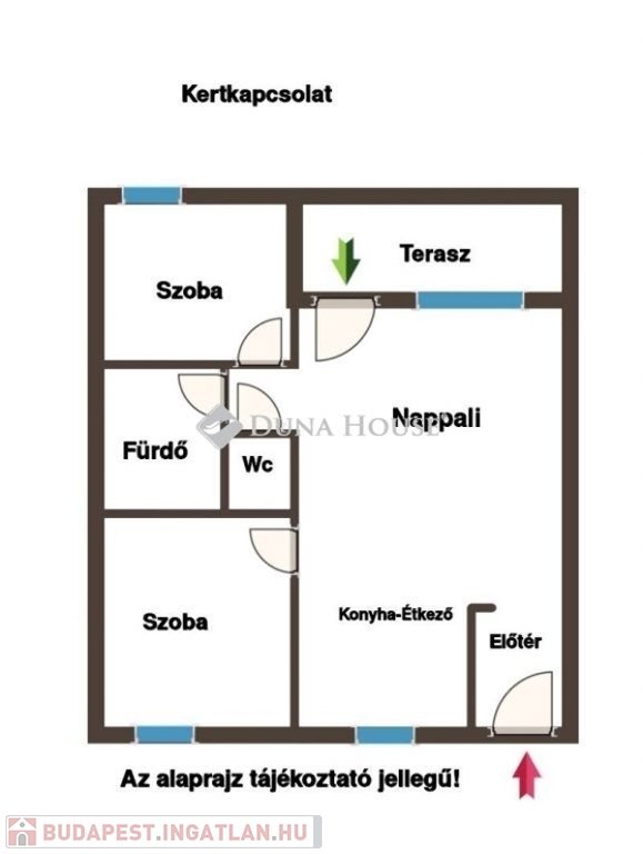 Amerikai konyhás nappali étkezővel- 2 külön nyíló hálószoba-fürdőszoba és külön mellékhelyiség-előszoba-parkolási lehetőség zárt udvarban-saját terasz+50 m² kertkapcsolat-gázcirkó fűtés...