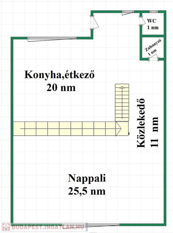 Elosztása: Földszinten van egy nappali ,étkezős konyha, WC és zuhanyzó továbbá a felső szinten 2 db hálószoba, dolgozószoba és egy fürdőszoba található