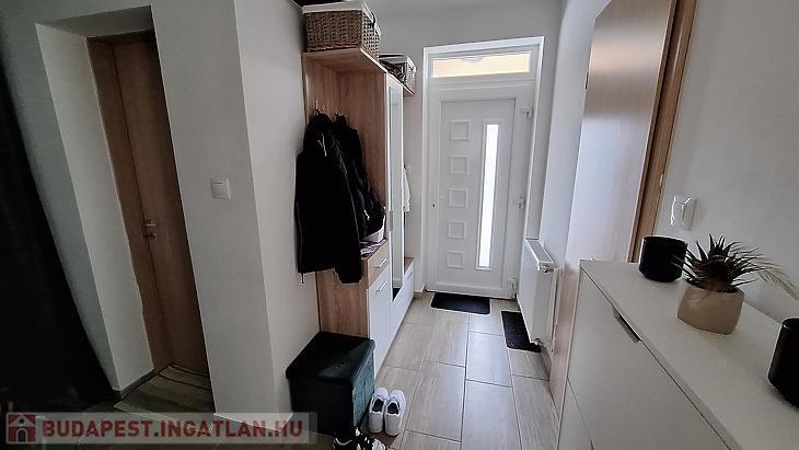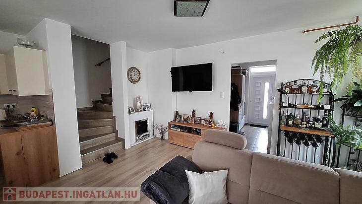 Elosztása: Földszinten található egy amerikai konyhás nappali, tároló, fürdőszoba zuhanyzóval, előszoba és egy garázs, míg az emeleten 3 db tágas hálószoba és egy kádas fürdőszoba.