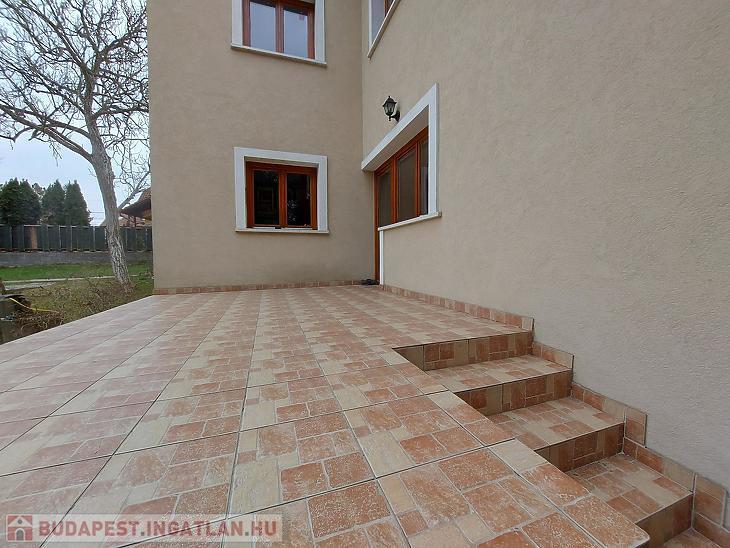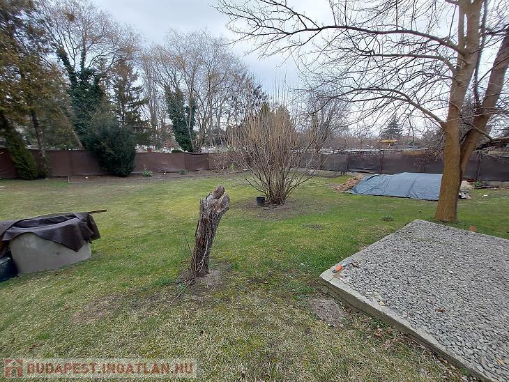 Az udvaron található egy 17 nm-es garázs szerelő aknával, valamint egy 20 nm-es fedett kocsibeálló is. A kert gondosan ápolt, örökzöldekkel és termő gyümölcsfákkal, ami igazán barátságossá teszi a környezetet.