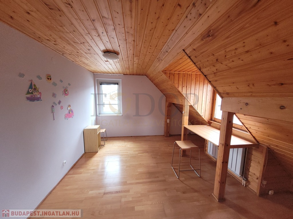 Az emeleti szinten újabb két hálószoba található, egyikük saját terasszal, valamint egy zuhanyzós fürdőszoba, külön WC-vel, és egy modern, amerikai stílusú konyhás nappali teszi teljessé az otthonos hangulatot.