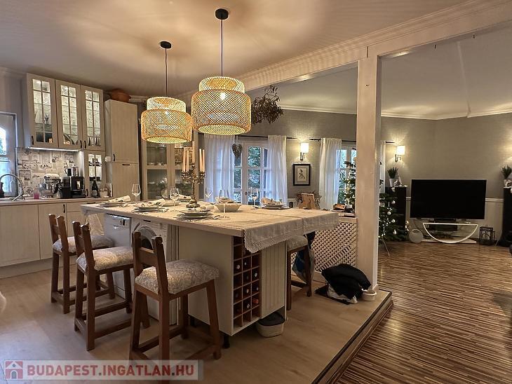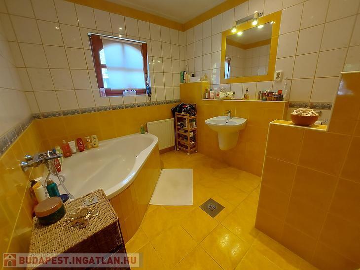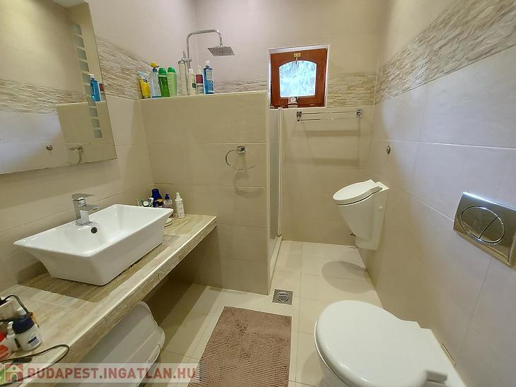 A szobák laminált parkettával, a többi helyiség járólappal vannak burkolva, a nyílászárók fa típusú termo üvegesek, a nappali és az egyik hálószoba klímával felszerelt.