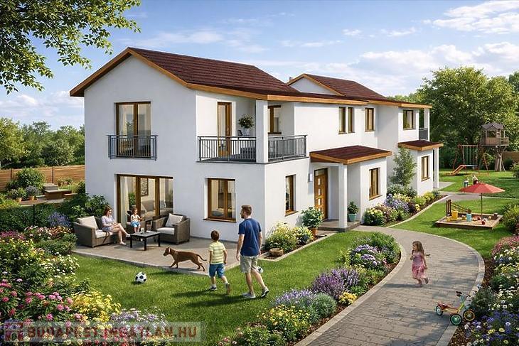 Alsógöd kertvárosában kínálunk eladásra két újépítésű, 166 m²-es családi házat, amelyhez 744 m²-es, külön elkerített kert tartozik.