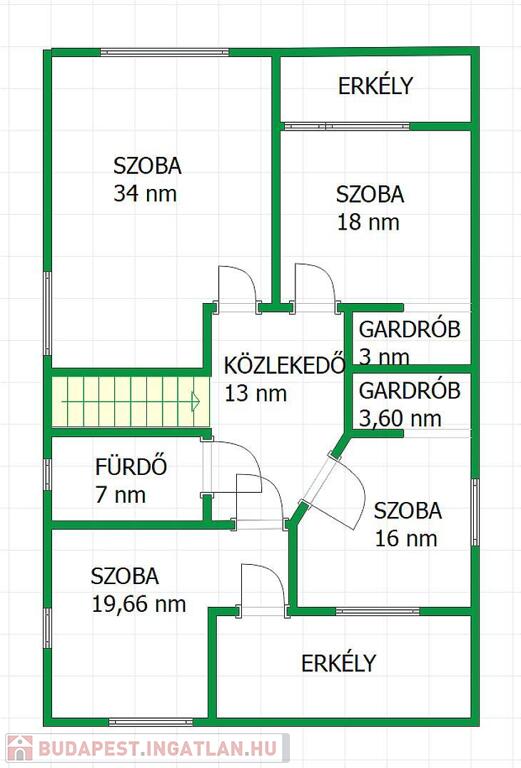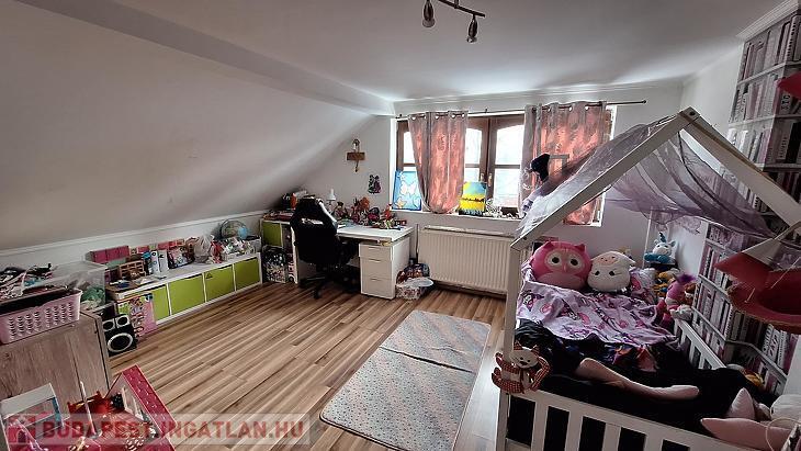Az emeleti szinten négy hálószoba kapott helyet ,ezek közül kettő gardróbos , valamint egy fürdőszoba és két erkély, amelyek kellemes pihenést biztosítanak.