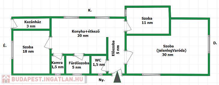 Az ingatlannak az alap területe 95 nm, 3 szoba, konyha, fürdőszoba, kamra, WC, kazánház.