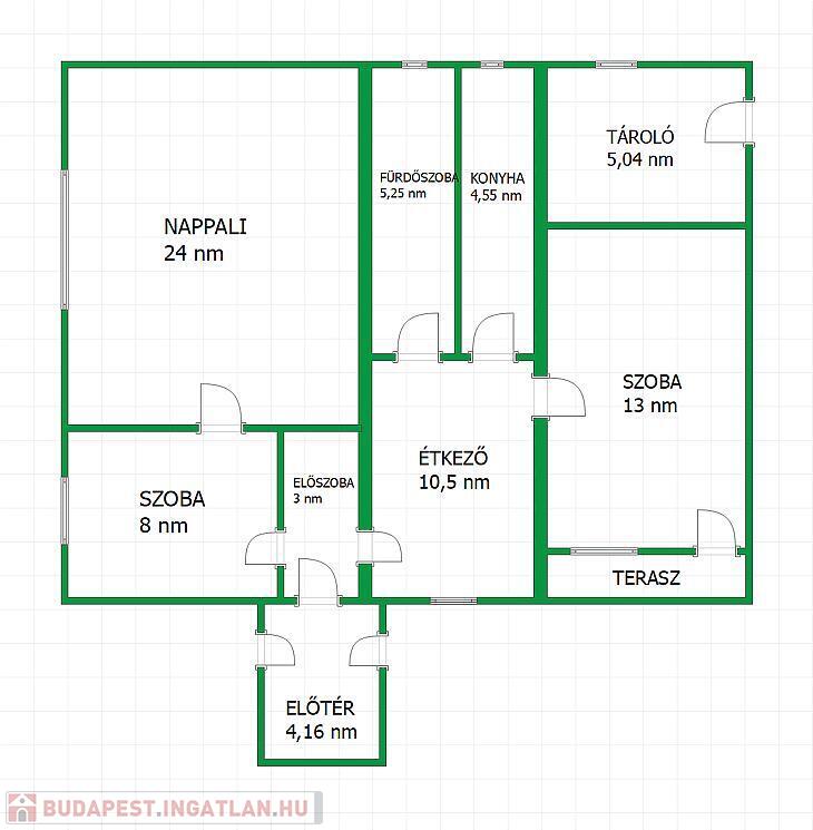Elosztása: 3 db hálószoba, konyha, étkező, fürdőszoba
