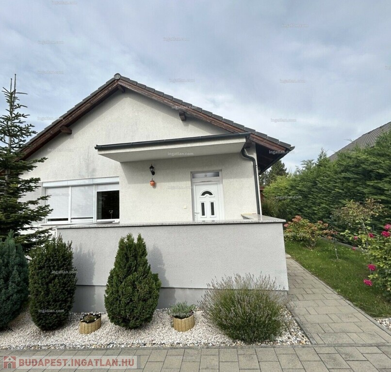 A bejárat egy 9,2m² teraszról nyílik,2 db melléképület található az ingatlan két oldalán,melyek közül a kisebbikben kézmosó és WC került kiépítésre. A nagyobb melléképület inkább tárolóként funkcionál. A ház déli -keleti és nyugati oldalakról nagy méretű redőnyös szúnyoghálós Aereco szellőztető rendszeres ablakokkal biztosítja a kellemes világos tereket. Riasztó berendezés, kaputelefon, szellőztető és öntöző rendszer teszik még komfortosabbá. Az ingatlan két oldalán könnyen karbantartható gondozott parkosított kert található,a környék csendes barátságos,a főváros 15 perc alatt elérhető kényelmesen.