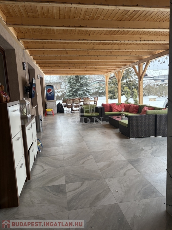 A házhoz 500 nm saját kert tartozik, az utcafront felől, előkerttel helyezkedik el. Az eredeti nagy méretű telek hátsó részén, egy nyaktaggal csatlakozó (ikresített) másik ház keül megépítésre, amely szintén önálló udvarral fog rendelkezni. és 4 méter széleskocsibejáró a megvételre kínált ház hátljánál fog húzódni, így biztosítva az intimitást.