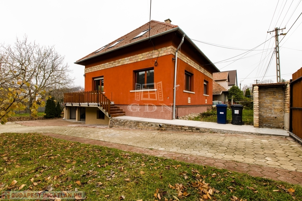 A főépület szuterén (48nm) és az alsó lakás (75 nm), 1980-as években épült, beton alapra 30-as tégla falazattal. 2009-ben ráépült beton födémmel és új tetővel egy külön bejáratú 56 nm-es lakás, illetve mellé épült egy 35 nm-es két állásos garázs elektromos garázskapuval, ami fölött 56 nm-es terasz került kialakításra. Ebben az időben kapott az épület körbe 7 cm dryvit szigetelést és új fa thermo nyílászárókat is.