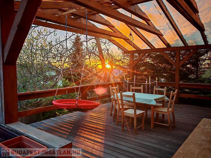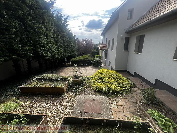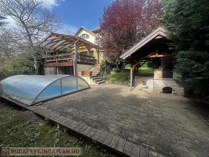 A hátsó udvaron medence, félszuterén szinten szauna található.