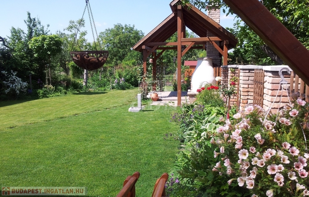 Az udvaron fúrt kút található és automata öntözőrendszer gondoskodik a zöldellő kertről.