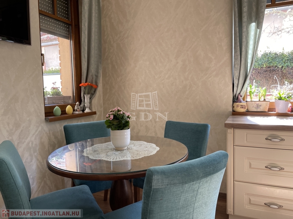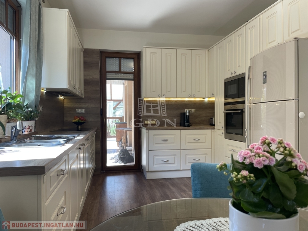A kettő nagyobb szobából, közvetlen kijárat nyílik a hátsó kertre néző közel 18nm nagyságú teraszra.
