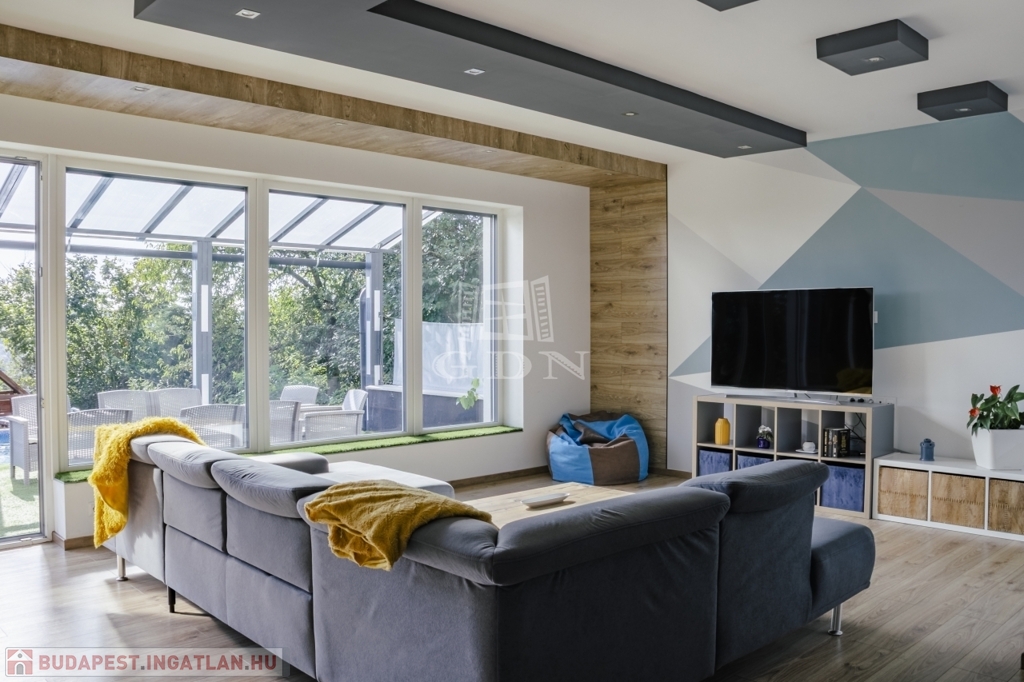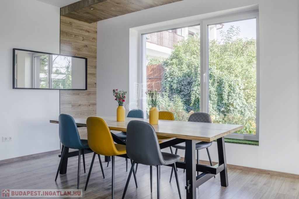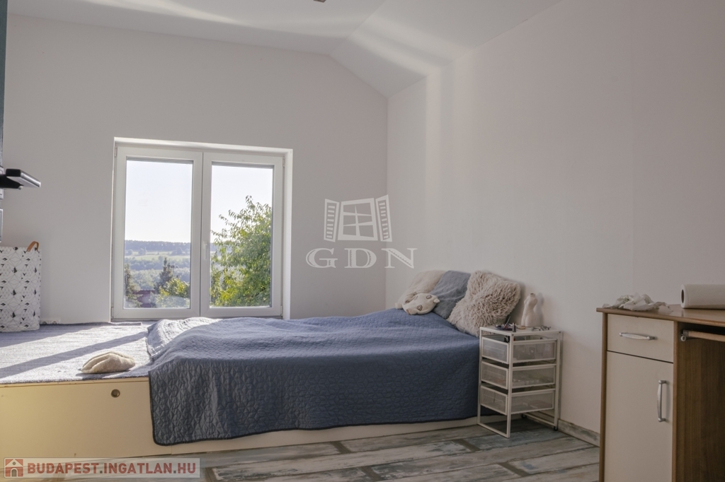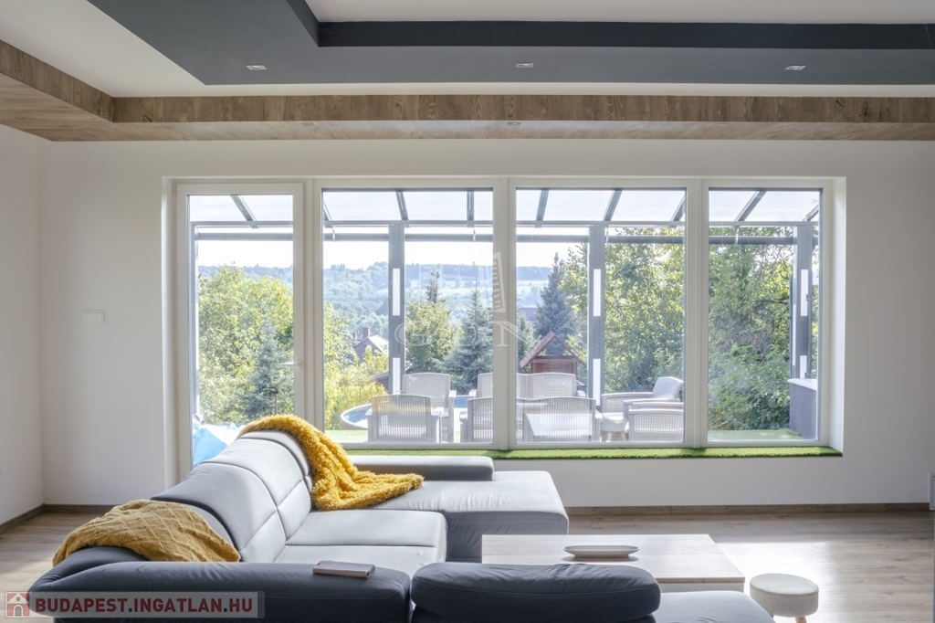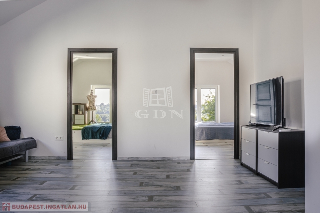 A ház jelenleg 5 szobás, a kialakítás lehetőséget ad további terek létrehozására – anélkül, hogy az összhatás sérülne.