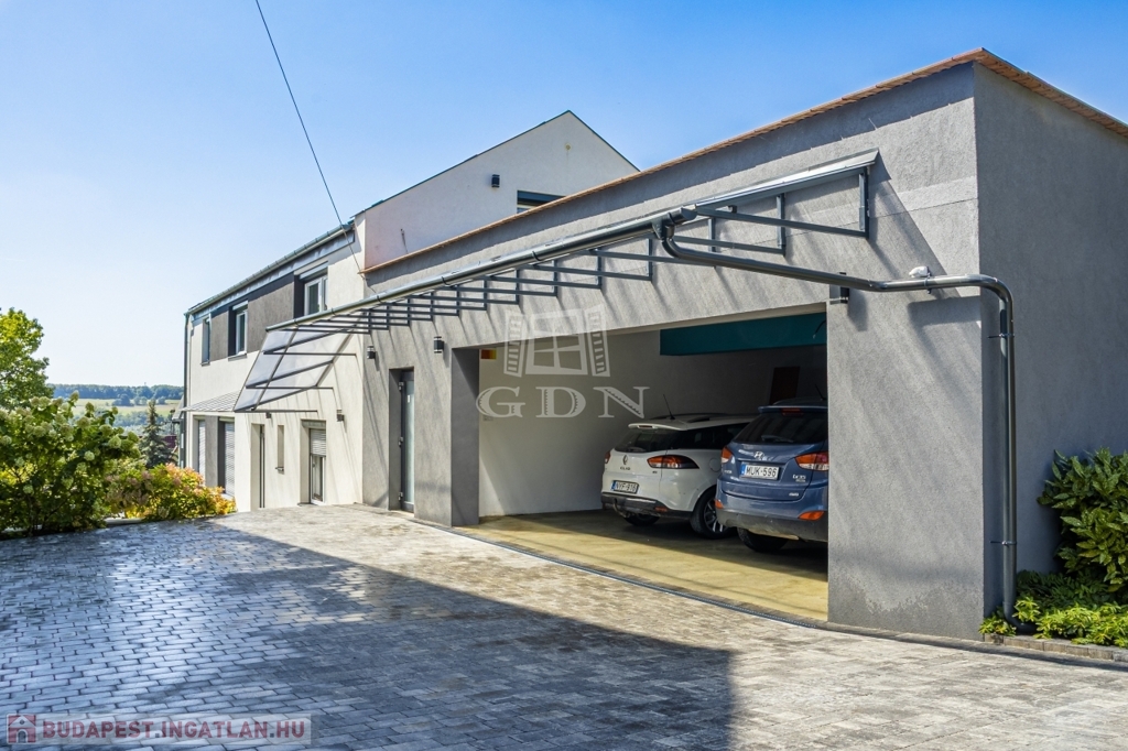 szellőzőrendszer, érzékelős kültéri világítás, tágas 55 m²-es kocsibeálló és 18 m²-es tároló.