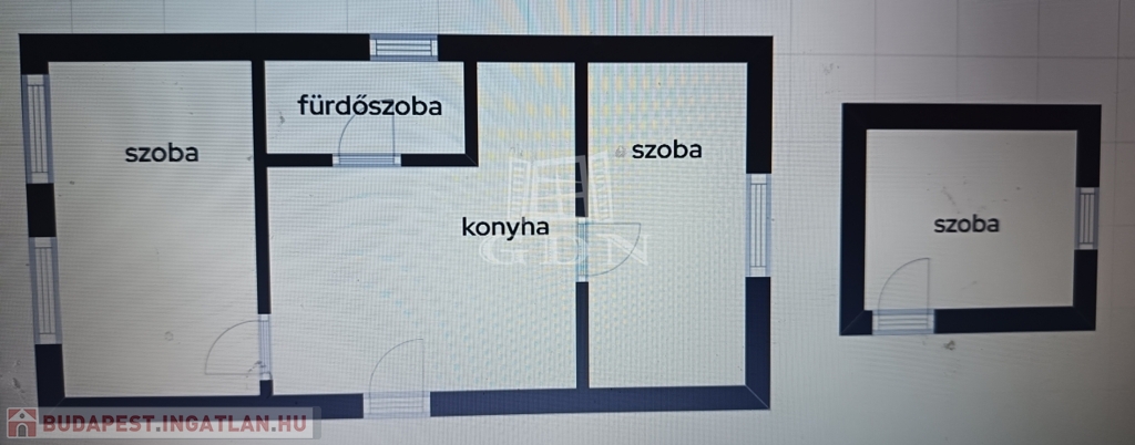 60 nm alapterületen konyha, szoba, előszoba, fürdőszoba, wc-vel.