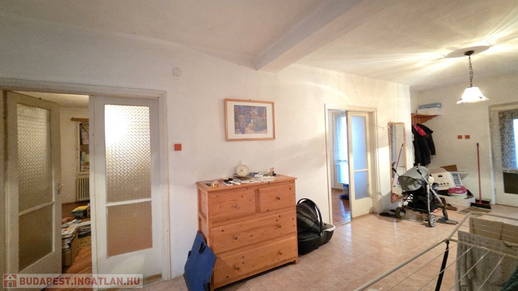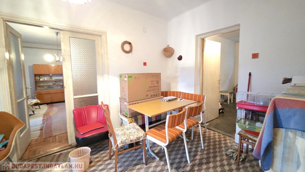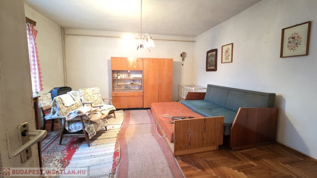 A nyílászárók eredeti fa szerkezetűek, a szobák parkettásak, a vizes helyiségekben pedig kerámia burkolat található. Az ingatlan tehermentes és azonnal költözhető.
