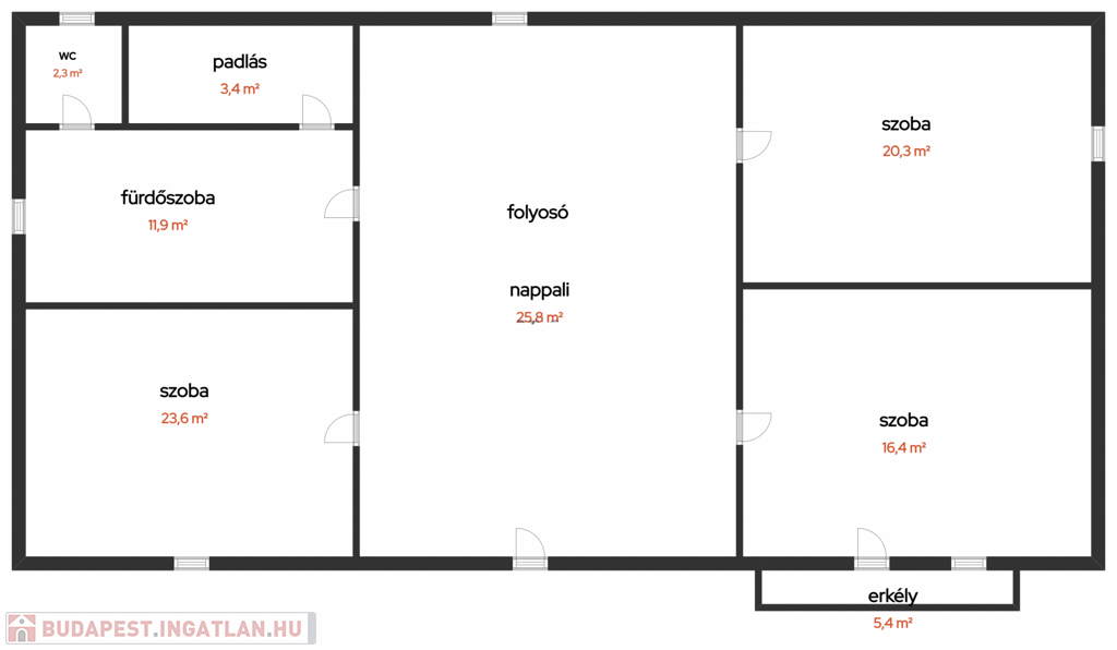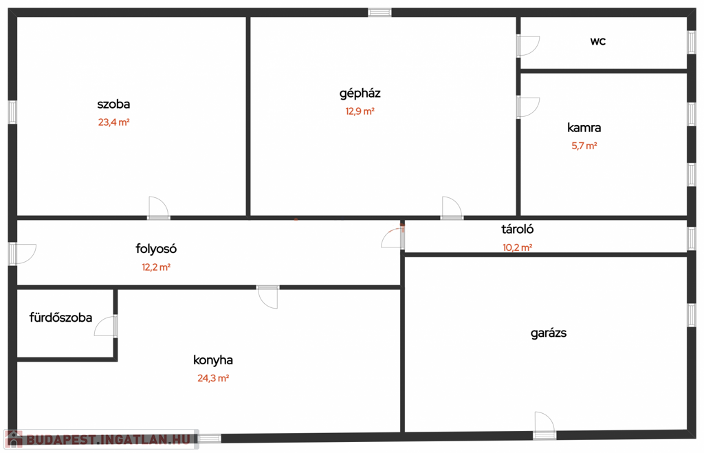 A terek eleve nagyok, jól bútorozhatók, a ház kelet–nyugati fekvése pedig egész nap fantasztikus fényeket ad – reggeltől estig napfény járja be a helyiségeket.