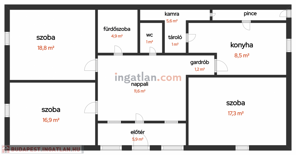Burkolatai a szobákban, parketta, illetve lamináltpadló, konyhában és a vizesblokkban kerámia borítást kapott.