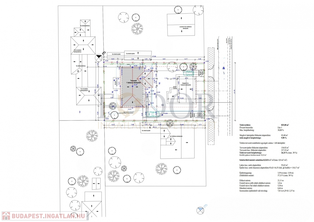 A 825 nm-es telekre 2db önálló családi ház került kialakításra, Az utcafront felől egy 50 m2-es önálló kis házikó áll. A hátsó ingatlan egy külön bejáraton érhető el, kerítéssel teljesen le van választva. A privát szféra adott. Az ingatlanhoz tartozó telekterület 464 m2. Jogilag rendezett, osztatlan közös tulajdonban van, telekhasználati megállapodással rendelkezik.