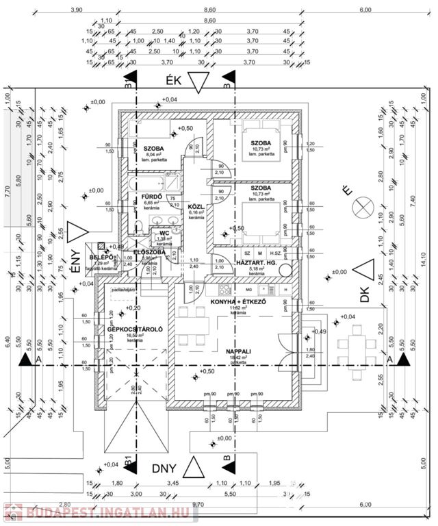 +16,50 garázs, amely a lakótérrel kapcsolódik az előszobán keresztül, elektromos kapun kényelmes biztonságos beállást biztosít.