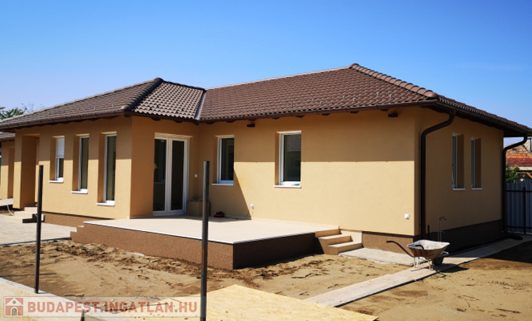 Egyszintes családi ház rendkívül magas műszaki tartalommal! Gyál központjához közel, csendes, új építésű, 123 m2-es, nappali + 4 szobás, 2 fürdőszobás, dél-nyugati tájolású családi ház 640 m2-es telekrésszel 2026 nyári eleji átadással kulcsrakészen eladó. Csúcstechnológiájú Daikin hőszivattyú biztosítja a padlófűtést, a mennyezet hűtést-fűtést és a meleg vizet. A nappaliban egy inverteres hűtő-fűtő klíma is kialakításra kerül. Elektromos alumínium redőnyök szúnyoghálóval. Riasztó. Elektromos kapu, garázsajtó. H tarifa. 1x32A és 3x20A. Referenciaház megtekinthető. A fotókon egy rövidesen átadásra kerülő ingatlan látható. Az ingatlant csak irodánk kínálatában találja.