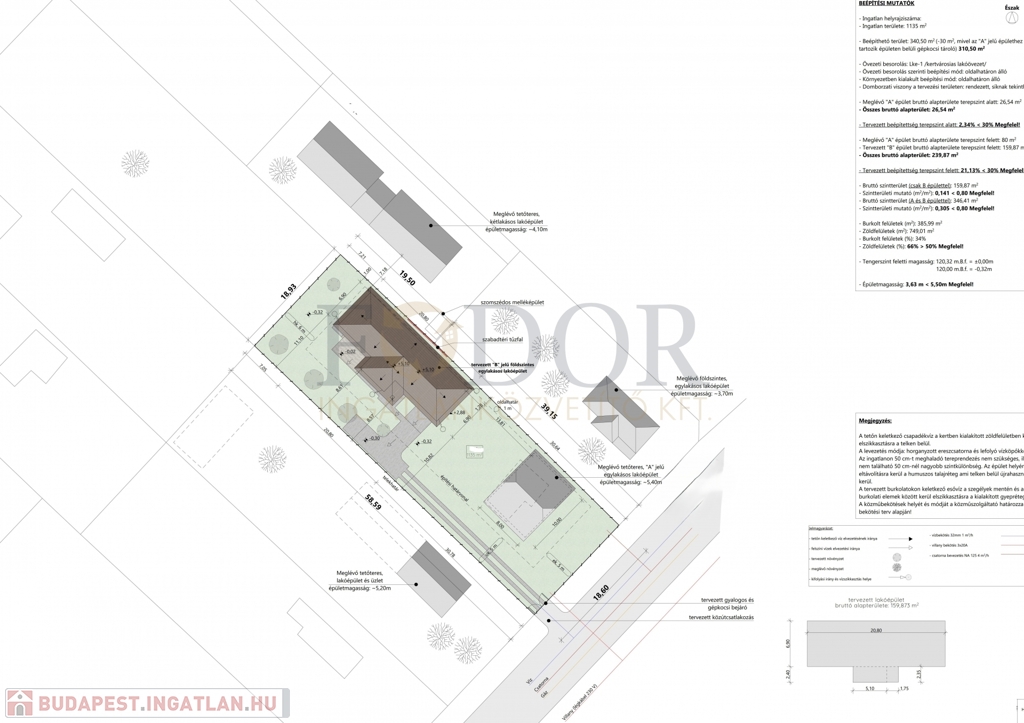 Az ingatlan 620 m²-es, teljesen privát telekterületen helyezkedik el, családi házas övezetben, aszfaltozott utcában, barátságos szomszédsággal. A nyeles telken az épület az udvari részen kap helyet, míg az utcafronton egy teljeskörűen felújított családi ház található – ez maximális intimitást biztosít.