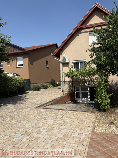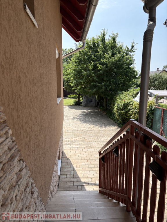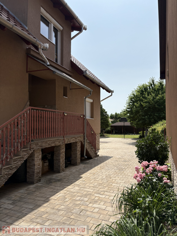 A telek 541 nm-es, ami minimum 4 autónak biztosít kényelmes parkolást a térkövezett udvarban. A kert többi részén medencének kialakított burkolt terület, egy szaletli és füves rész lett kialakítva.