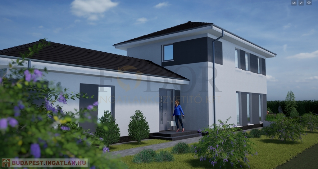 A ház prémium műszaki tartalommal, tágas terekkel, nagy kerttel és igazi családi otthonra tervezett elrendezéssel készül.