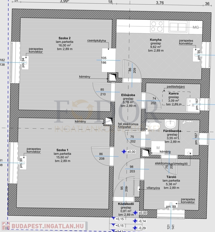 • Fűtés: gázkonvektoros, radiátoros hőleadással