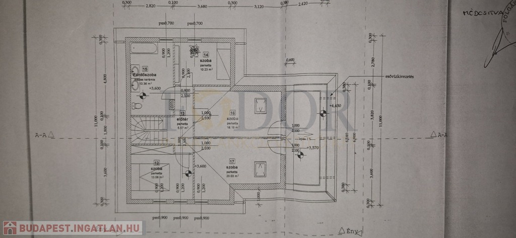 Emelet: 4 db szoba, közlekedő, fürdő (kád) + wc, erkély.