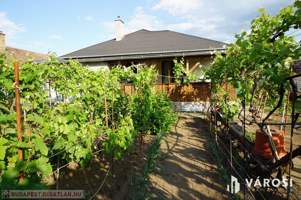 Gyál közkedvelt részén a Pesti út közelében eladó 2000-ben épült, 92 nm-es családi ház, 20 m2-es fedett terasszal és a teraszról nyíló 12 m2- es tárolóval.A tároló nincs a vázrajzon feltüntetve ezért csak kp.- vel vásárolható meg. Könnyűszerkezetes kisebb autónak megfelelő garázzsal, 550 nm-es önálló helyrajzi számú telken. Az ingatlan fedett belépőjéből nyílik a nappali-konyha étkező (33 nm) DNY-i teraszkapcsolattal. A konyhához 4 nm-es kamra is tartozik. Az előszobából megközelíthető a fürdőszoba( 8,40 nm), külön WC, és két egyforma méretű szoba 17,60 nm.A nappali igény esetén egyszerűen külön választható az étkezőtől egy válaszfallal,amennyiben 3.szoba szükséges. A nappali-étkezőből a 20 nm-es fedett teraszon át a gondozott kertbe jutunk. Az ingatlan 2000-ben épült, Porotherm tégla falazatú, beton födémes. Az udvarban gyűrűs kút hidrofor aknával.. Kertje gondozott gyümölcsfákkal és szőlő lugasokkal beültetett.Buszmegálló 100 m, iskola,piac, üzletek 300 m-en belül elérhető.