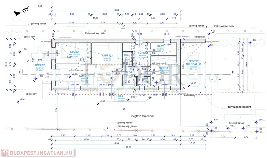 • Tartozik hozzá fedett gépkocsibeálló 19,39 m² és terasz 16,36m²
