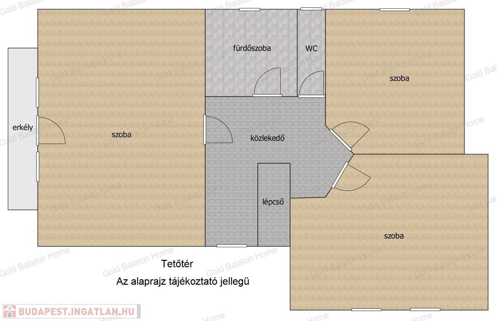 - Tetőtéri helyiségek: szoba 25 m2, szoba 21 m2, szoba 12 m2, erkély 4,5 m2, fürdőszoba 5,5 m2, külön WC 1,5 m2, közlekedő 12 m2.