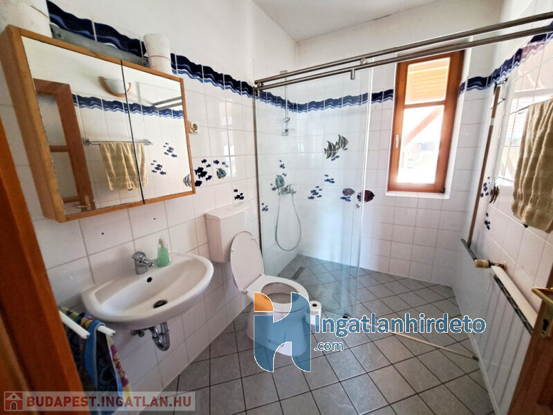 Elhelyezkedése: Belterület Tájolása: Dél-nyugai tájolású Állapota: Kiváló Komfort besorolása: összkomfortos Építési éve: 2006 Alapterülete: 297 m2 Telekterülete: 719 m2 Szobák száma: 8 + 4 szoba Felújított: Felújított Felújítás éve: 2022 Felújítás során elvégzett munkák: Festés, Egyéb Közművek: Gáz, Víz, Villany, Csatorna Gázellátás: Vezetékes Vízellátás: Vezetékes víz Melegvíz-ellátás: Gázkazán Áramellátás: 230V/380 V Fűtés módja: Gáz Fűtés típusa: Cirkó Homlokzat állapot: Jó Építési mód: Tégla Tető formája: Magas Tető anyaga: Cserép Parkolási lehetőség: Garázsban Kilátás: Utcafronti kilátás, Udvari kilátás Jellemzői: Két bejárat, Redőny, Fűtött garázs, Légkondicionáló, Udvari terasz, Beépített konyhabútor, Kert, Kerítés, Medence, Térkő Energetikai besorolás: B Egyéb jellemzők: Erkély, Terasz Tv, Internet: Internet Közelben: Orvosi rendelő, Bolt, Gyógyszertár, Vendéglátó egység, Reptér, Autópálya Terhelések: Tehermentes ingatlan Eladásra vonatkozó információk: Az ár tartalmazza a teljes berendezést, Azonnal beköltözhető