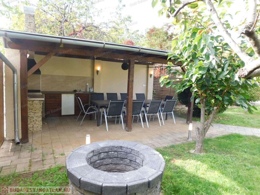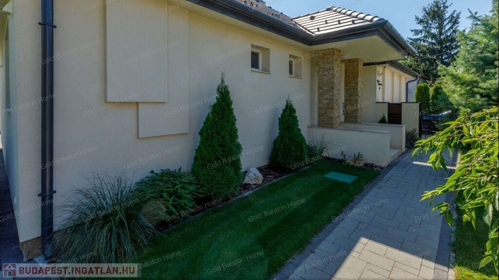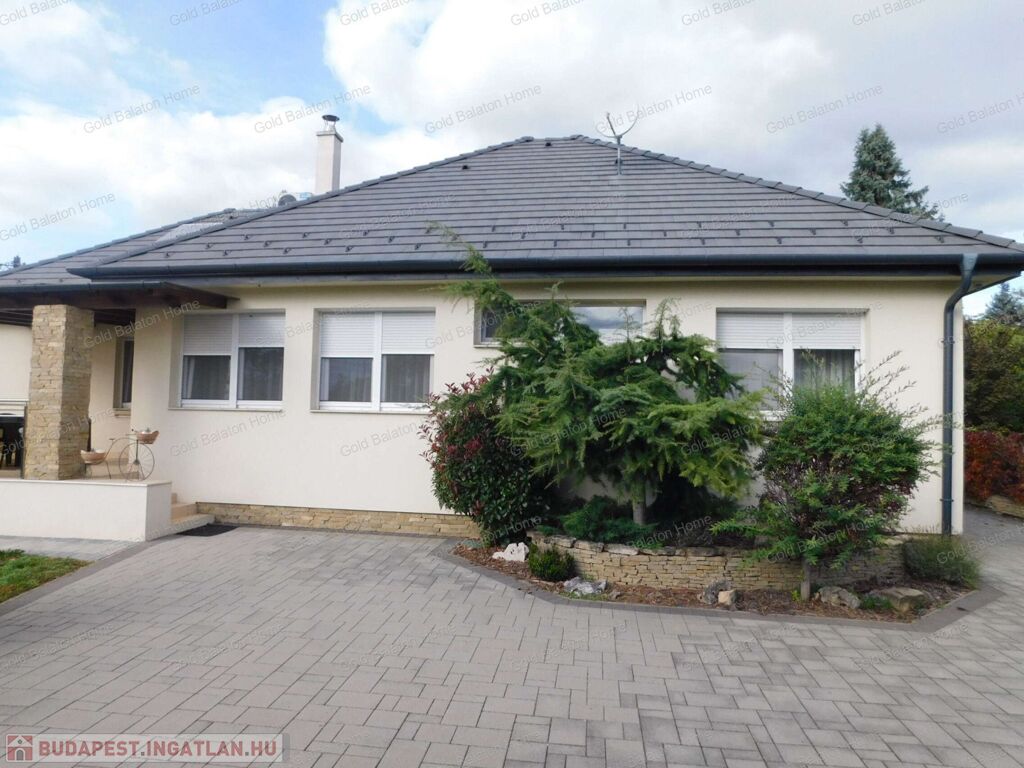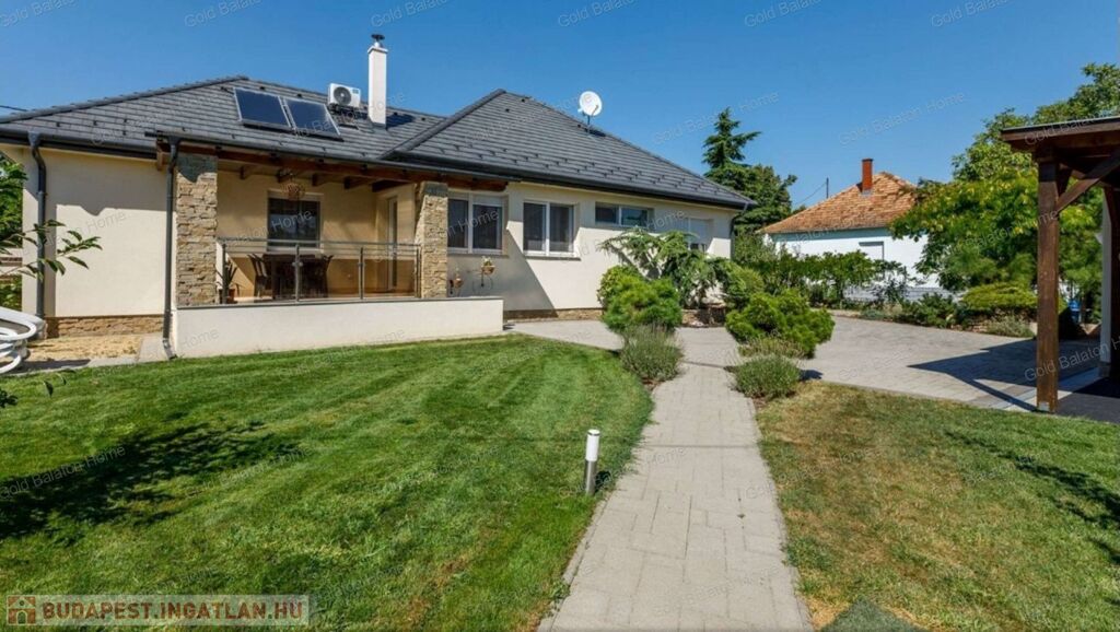 Egyszintes, újszerű CSALÁDI HÁZ 1 nagy nappalival, 4 hálószobával, 2 fürdőszobával, nagy terasszal, játszótérrel, kerti grill konyhával, garázzsal, szép, parkosított udvarral, csendes helyen, a strandtól mindössze 1000 méterre eladó.