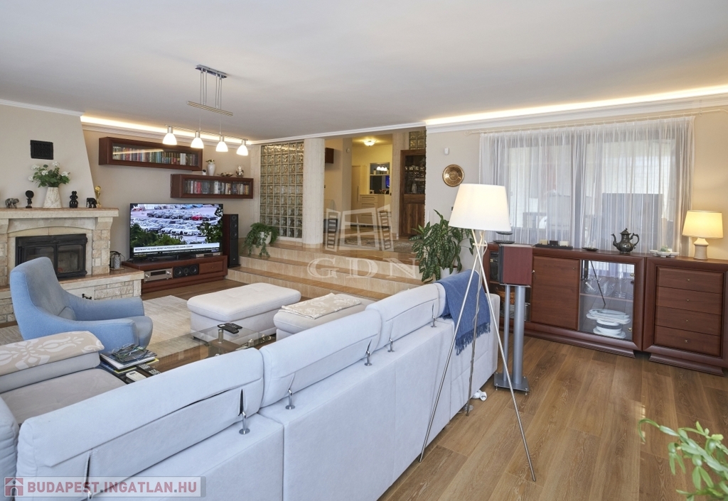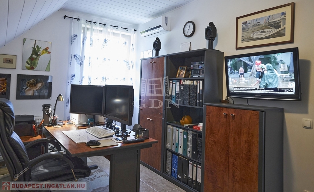 Az ingatlan kétszintes, részben alápincézett. Telken található egy 35m2-es dupla garázs, melyben az elektromos autótöltő kiépített.