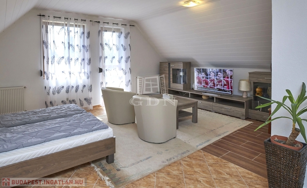 Az emeleti részen iroda, illetve vendégek fogadására alkalmas apartman lakás található, ami külön bejárattal is megközelíthető.