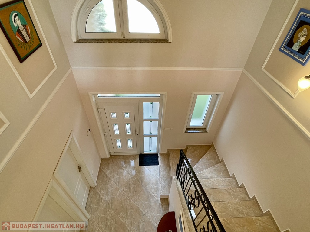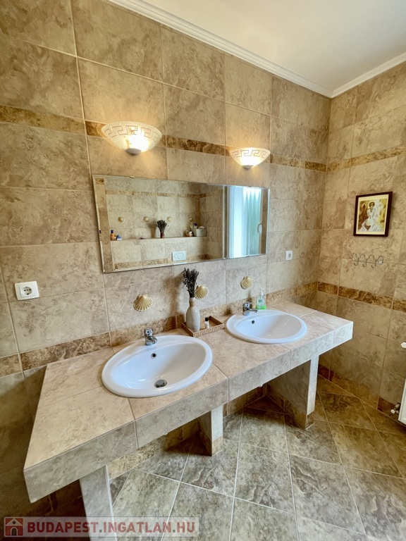 Gyenesdiáson a Balatont parttól ötszáz méterre, csendes zsákutcában kínálunk eladásra egy 729 m2-es telken egy kétszintes 250 m2-es elegáns családi házat! Tulajdoni lapon kivett lakóház és udvarként szerepel. Az épület 2014-ben épült, téglaépítésű / 10 cm-es külső szigetelés / és cseréptetővel fedett. Az épület nyílászárói szigetelt műanyagok, redőnnyel és szúnyoghálóval szereltek. A fűtésről és melegvíz ellátásról kondenzációs gázkazán gondoskodik. A bejövő víz tisztaságát vízlágyító berendezés biztosítja. Az épület felső szintje hűtő-fűtő klímákkal felszerelt! A hálószobák minőségi laminált padlóval a többi helyiség igényes kerámia lapokkal burkoltak. Az udvarra és a garázsba egyaránt távirányítóval vezérelt kapun és garázsajtón lehet bejutni. Az épület riasztóberendezéssel is felszerelt. Az udvar állandóan gondozott, / öntözőberendezéssel ellátott / és gyümölcsfákkal, valamint díszes bokrokkal tarkított. Az épület rendszeresen karban tartott.